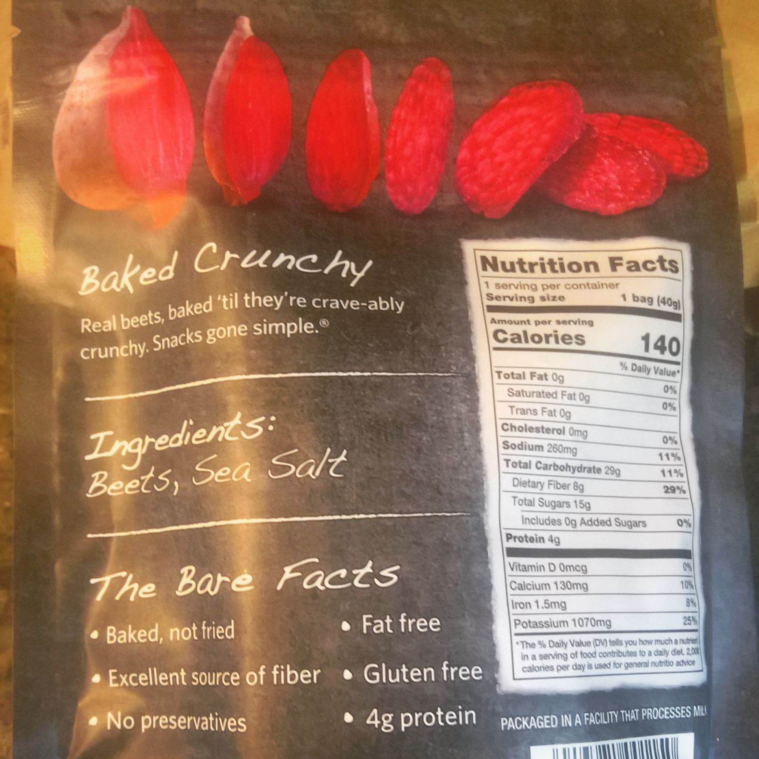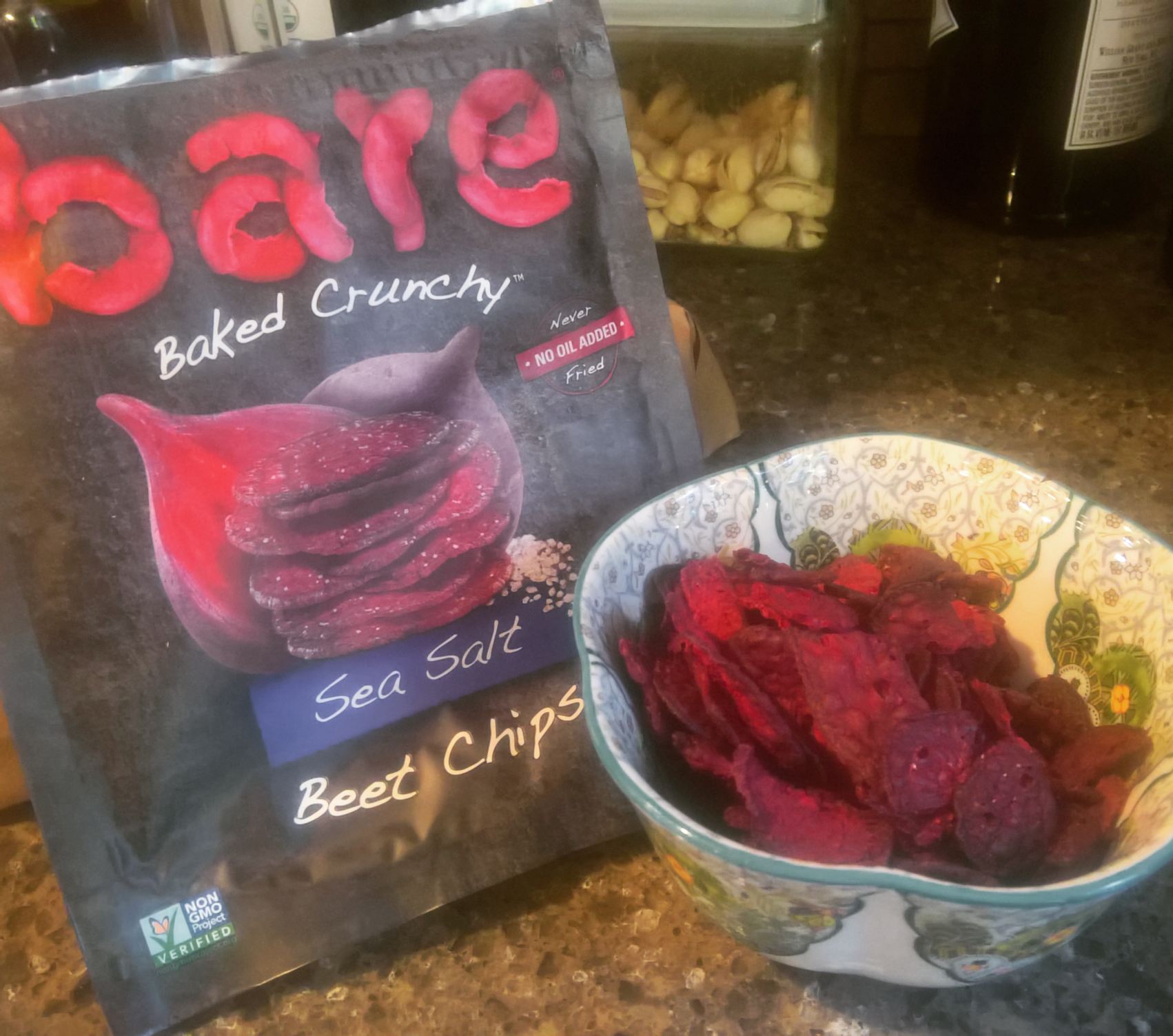 Beet chips from Bare Snacks were a big hit with my oldest son. He didn’t remember eating beets before (although he has) so I thought the strong taste might be too much for him since beets are one of those foods you generally have to have a few times before really appreciating them. He loved them though and I was impressed with the nutritional value~ simply baked beets and salt, no oil, no frying, and the nutrition information even boasts iron. How often do you see iron in a chip? I liked them too but my youngest refused to try them~ not surprising.