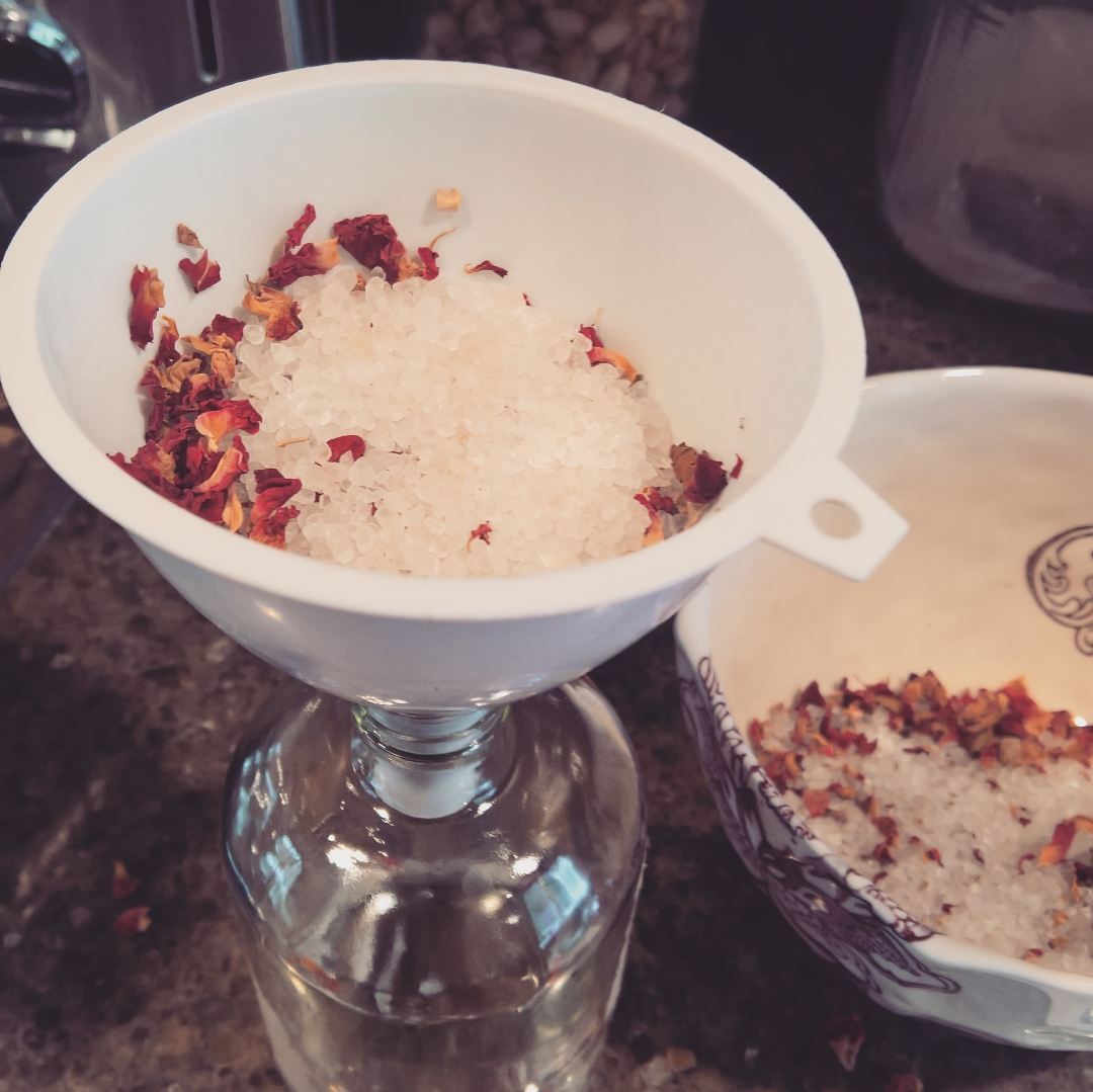 Making a body/bath/massage oil is incredibly easy with just base oil(s) and one or more essential oils. It can be made even more healing and complex with first creating an herbal oil, then adding essential oils. Making an herbal oil using the quick method only takes a few hours and is guaranteed to make your house smell divine. I have several tutorials on how to do this, here, and here.