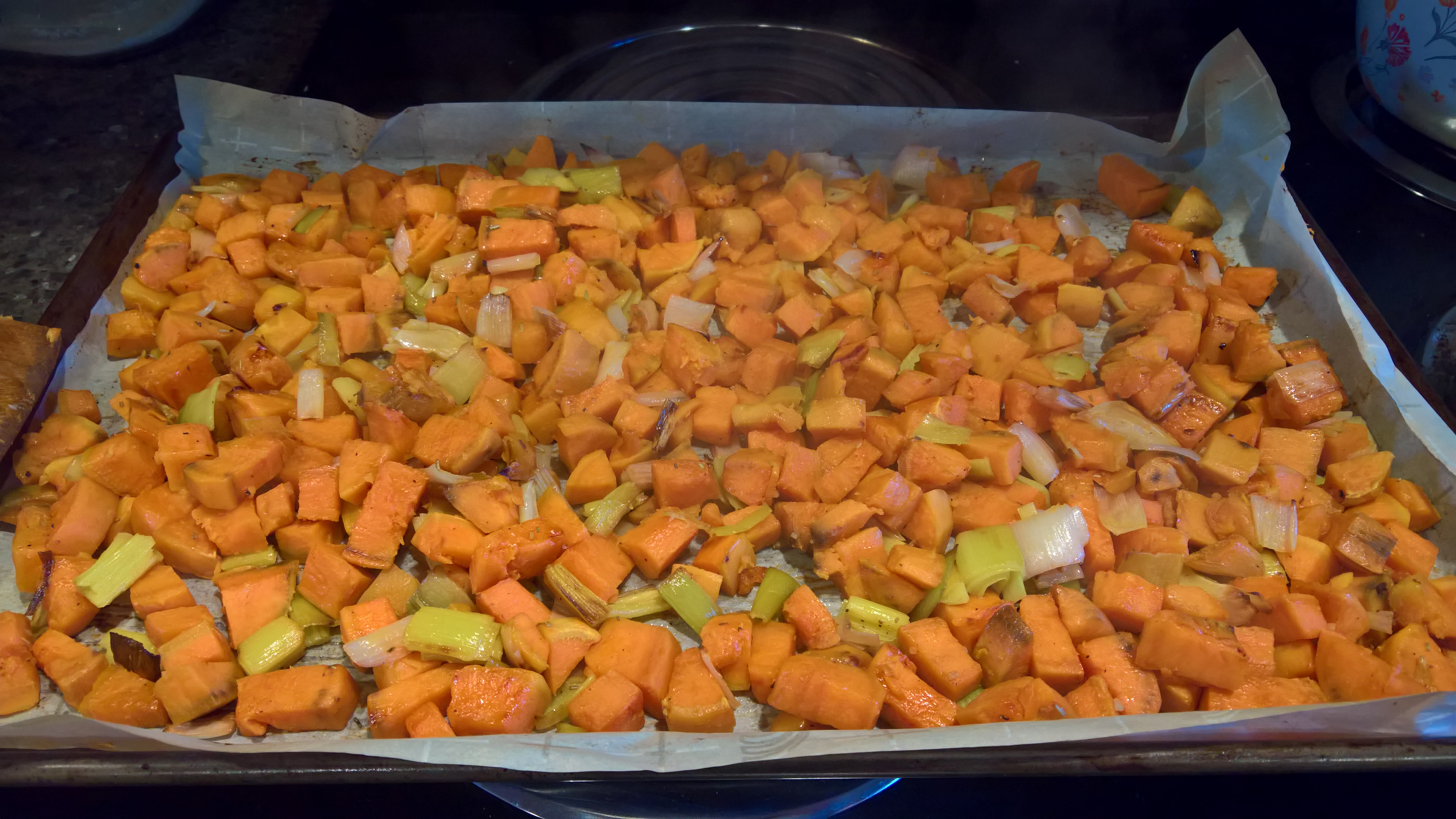 Roasted Sweet Potatoes with Leeks and Garlic