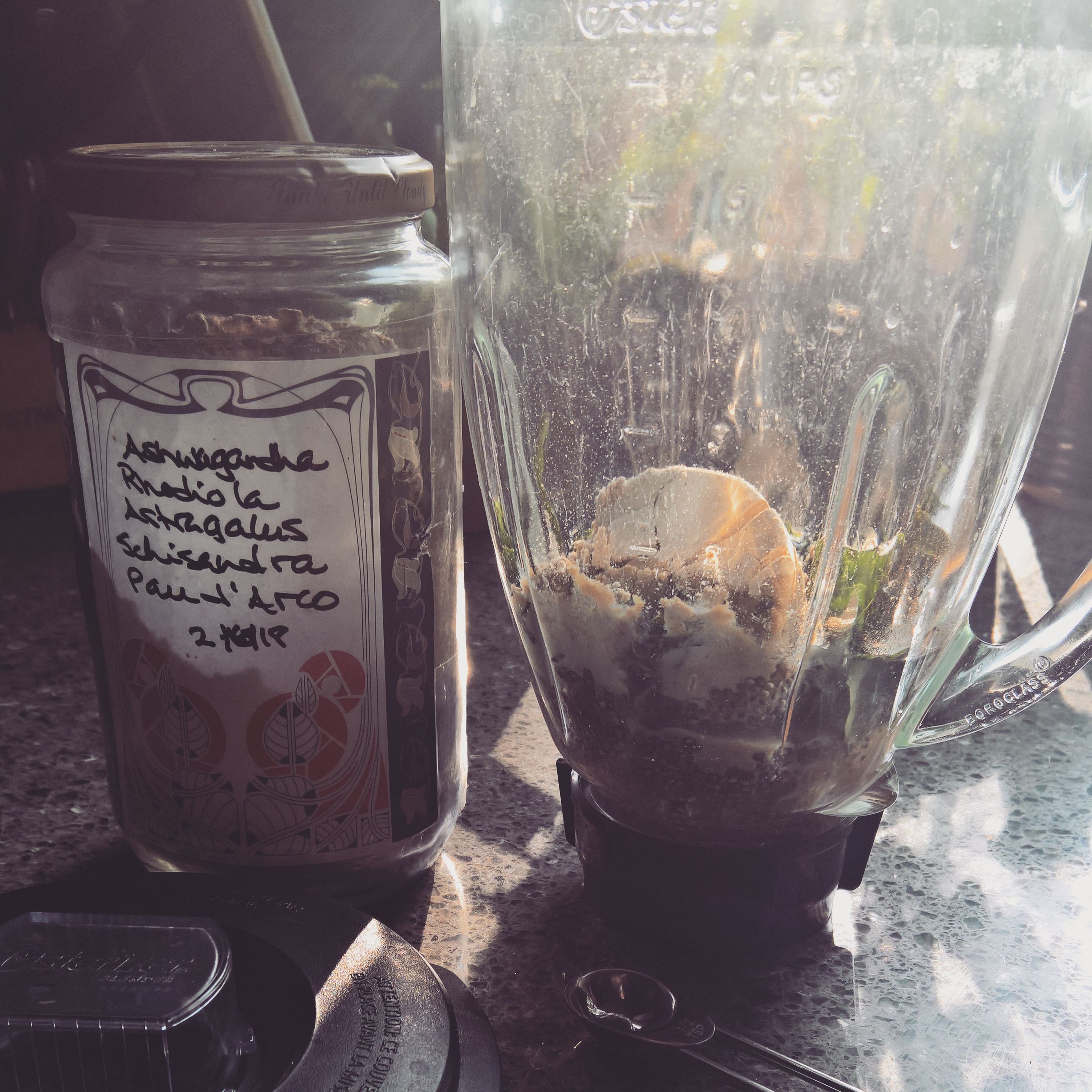 Next I add my 1 teaspoon herbal adaptogen mix and 1/2 t. digest mix,
